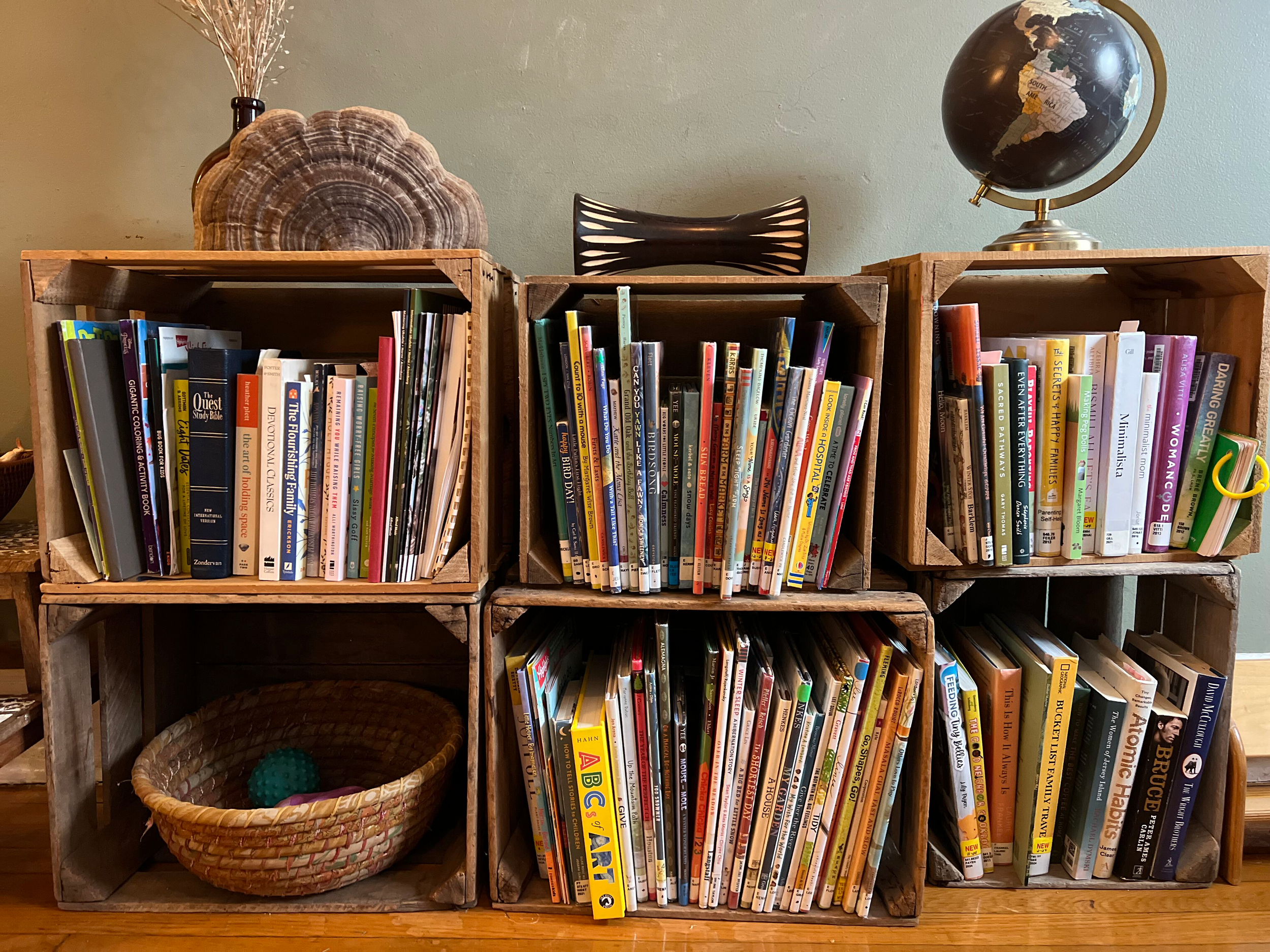 Piles of books have been constant companions in our home through the years. At my baby shower we had people bring books instead of cards, and I still vividly remember the excitement of taking my little one on a first library trip at a couple months old. Books helped me keep a toddler content while I nursed a newborn and they always provide a soothing balm for overwhelmed nervous systems. They teach us, calm us, inspire us and captivate us!